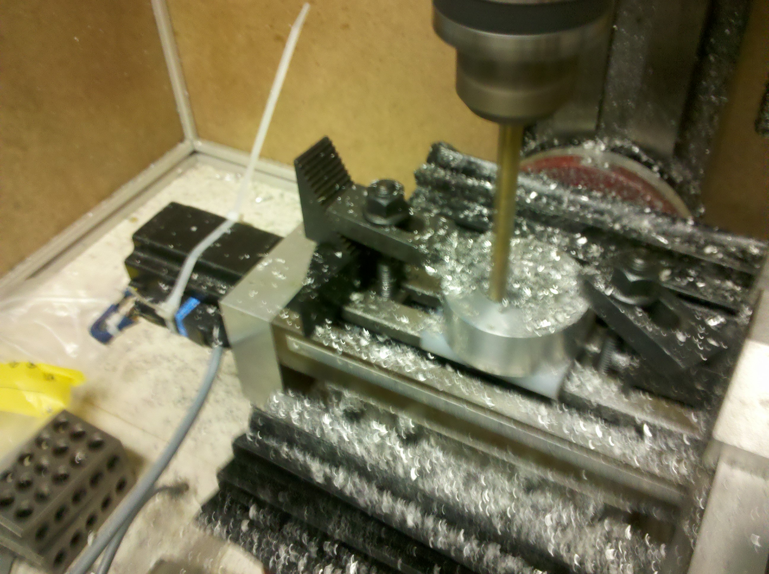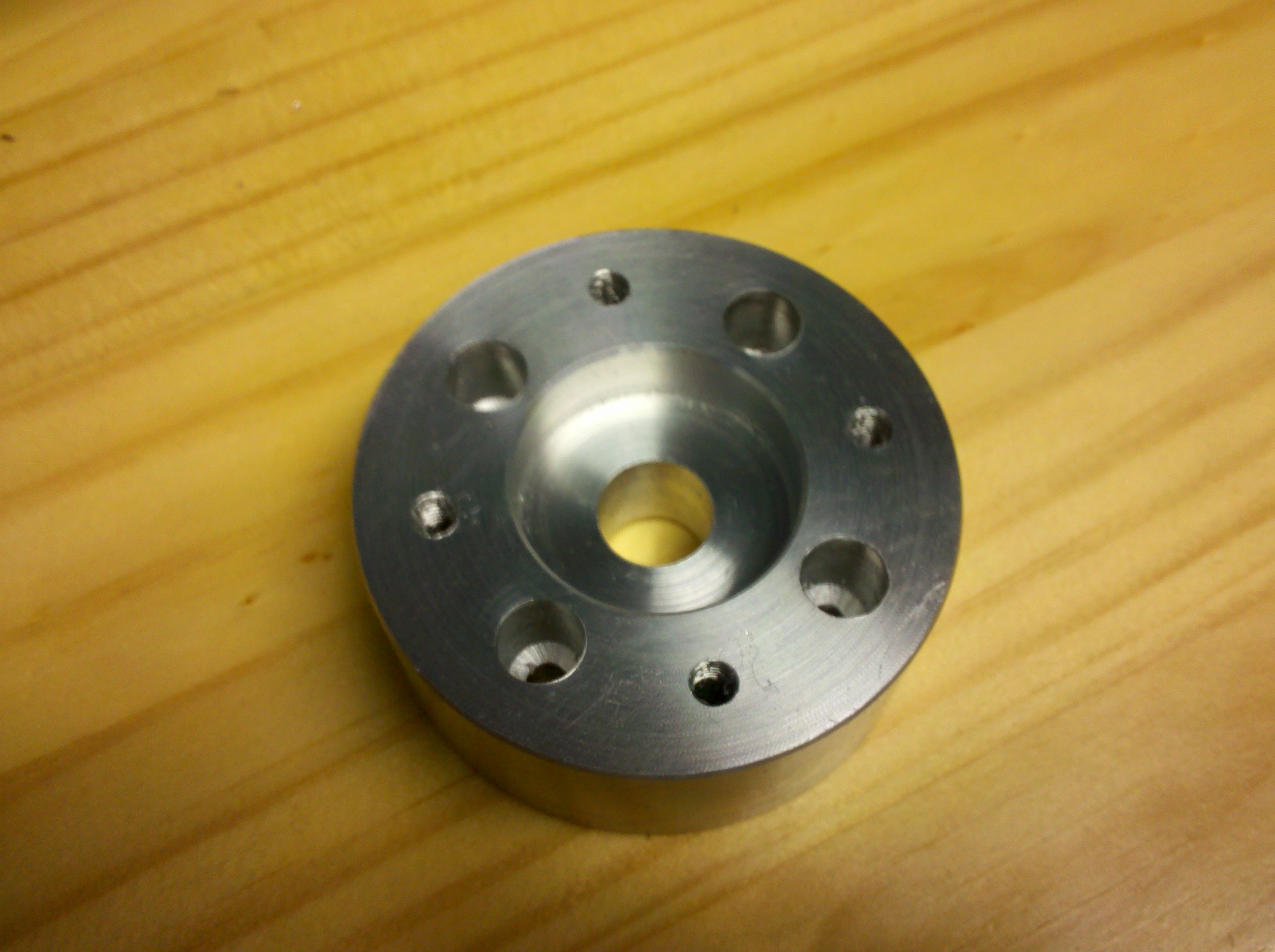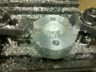 After the turning all the mounting holes are drilled in the cnc mill. The 4 holes that secure the disk to the front of the motor are also counterbored.