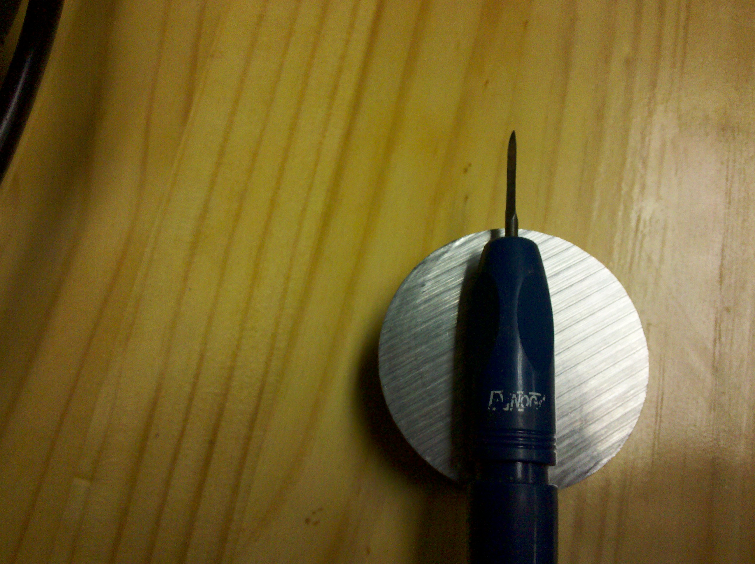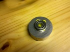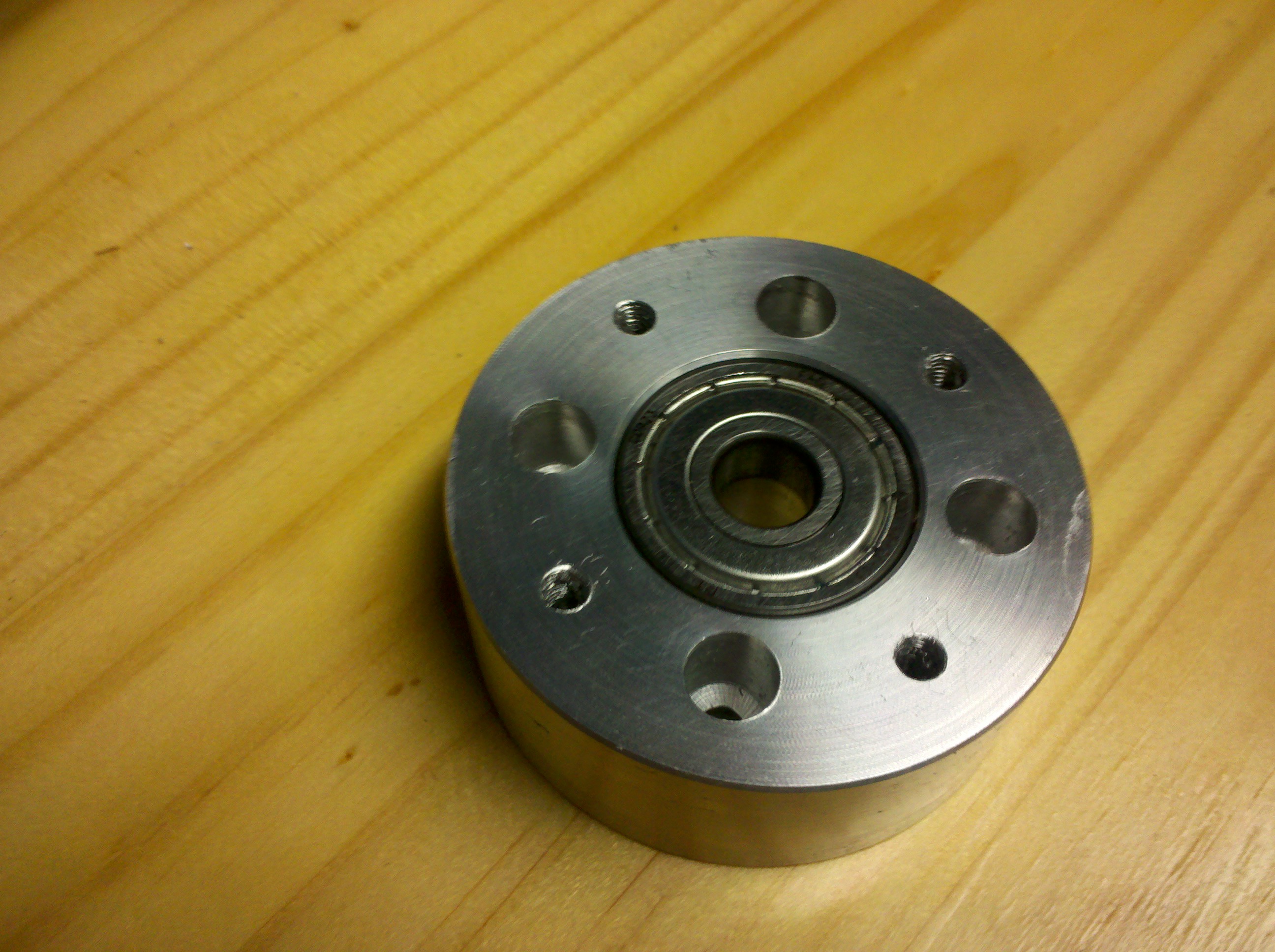 Here is the 2.5" x 1" aluminum disk that will be used to make a heatsink/bearing block. The new ball bearing is several times larger that the one built into the body of the motor.